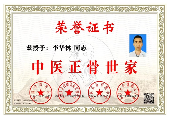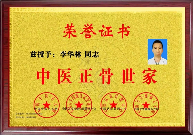 传统中医正骨手法作为中医瑰宝,具有广阔的发展前景,传承与创新并重,一方面要坚持传承中医正骨的精华,以平衡为钢,整体为辩证,筋骨并重等核心学术思想、以及摸、接、端、提正骨八法等,另一方面,要结合现代科学技术进行创新,便于传承和推广,李华林行医数十年,2025年9月进行申报获得中医正骨世家荣誉。