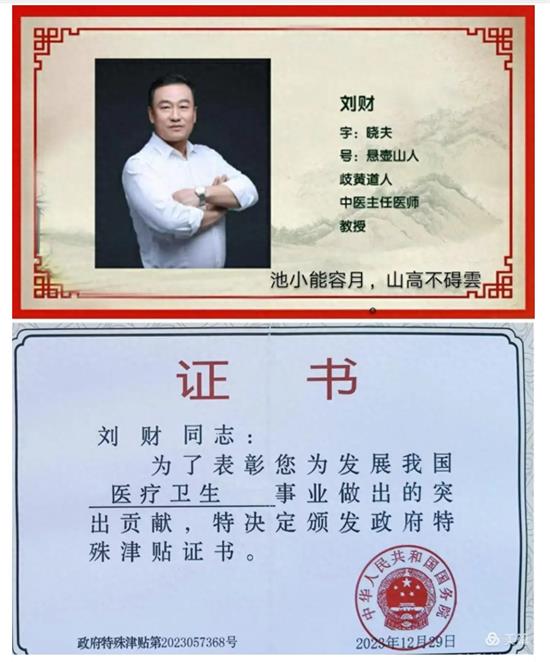 著名中医专家刘财教授荣获国务院特殊津贴证书