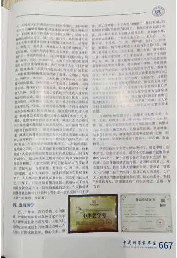 通过几十年认识、几十年实践、几十年对无数患者的治疗和融合认清了人与地球的关系。作为中医医者看到人体的各种疾病,这其中有天气变化病(包括季节病)、地域病、时间(时辰)病、久治不愈病,各种奇病、怪病等都会让他去不断的深入思考人体物质的转换与地球能量演化的相似性。人类的进步,是源于对大自然的认识,医学创新更是概莫能外,它是在对大自然深层认识的了解后获得。我们常说的医学基础,就是以大自然为基础。人体科学、地球科学都是大自然科学。不容否认的是,人是地球物质演化到高级阶段出现的产物,人由地球演化而来,人和地球必然存在相同的功能。它与我们哪里相同?我们必须去认识,去思考,去追寻,知道了地球的演化,就知道了人体的演化;同样知道了人体的演化,也知道了地球的演化,我们给人和地球一个互证的平台——《人地大同医学》。